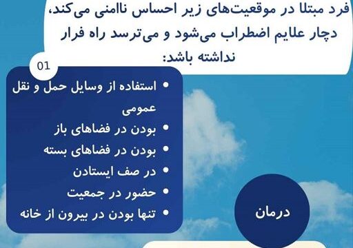 Agoraphobia نوعی اختلال اضطرابی است که فرد از قرار گرفتن در موقعیتهای باز یا بسته که فرار از آنها دشوار است، میترسد. این ترس میتواند باعث شود فرد از حضور در جمعیت، آسانسور یا قطار اجتناب کند.